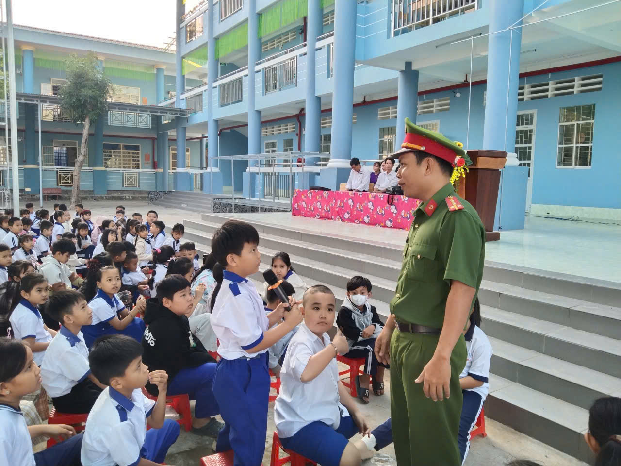 Công an xã Mỹ Hương tăng cường tuyên truyền pháp luật về trật tự, an toàn giao thông tại trường học
