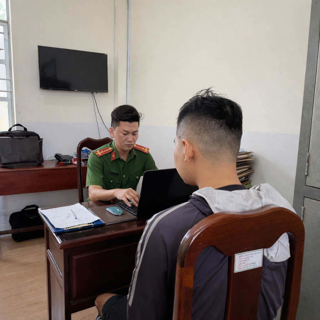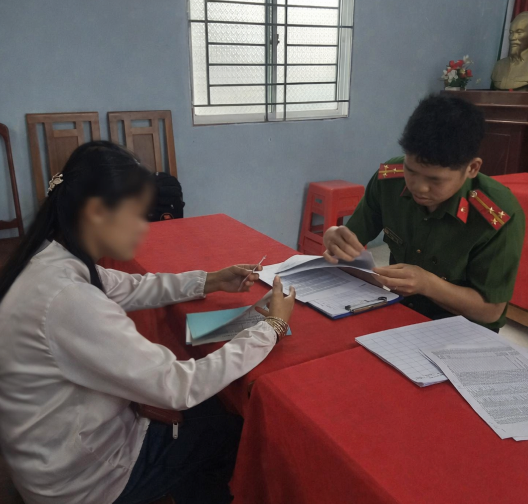 Công an xã làm việc với phụ huynh liên quan đến vi phạm của học sinh khi tham gia giao thông