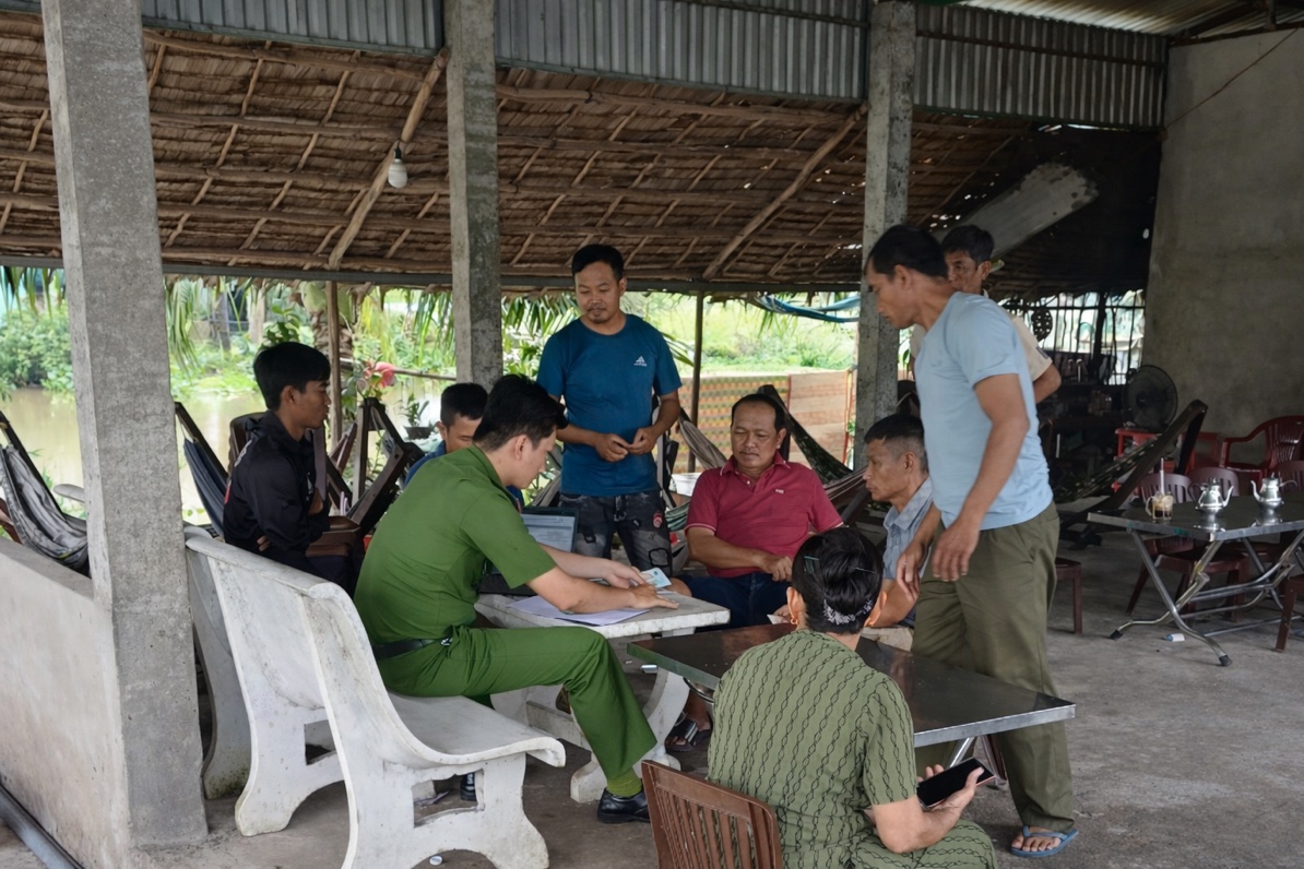 Công an xã Mỹ Hương lập biên bản và cho hộ dân cam kết không tổ chức giữ xe cho học sinh gần khu vực trường học