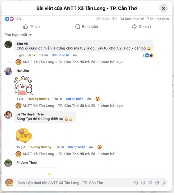 Các sản phẩm tuyên truyền ứng dụng công nghệ AI của Công an xã Tân Long đã thu hút nhiều lượt tương tác và nhận được phản hồi tích cực từ người dân, góp phần nâng cao nhận thức pháp luật, ý thức chấp hành pháp luật trong cộng đồng.