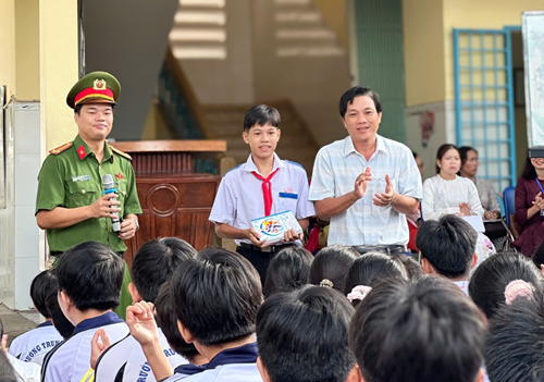 Ngày 29/9/2025, Công an xã Trường Long, phường Bình Thủy đã tổ chức tuyên truyền an toàn giao thông và phòng, chống ma túy và chuyên đề “Học sinh thời đại số – An toàn, văn minh trên không gian mạng” cho hơn 1.000 học sinh và giáo viên các trường Trung học cơ sở, trường Trung học phổ thông trên địa bàn. Tại trường Trung học cơ sở Trường Long, cán bộ tuyên truyền tập trung giới thiệu cho các em học sinh nắm quy định về độ tuổi và điều kiện được điều khiển xe mô tô, xe gắn máy, xe máy điện; mức xử phạt đối với hành vi vi phạm về điều kiện của người điều khiển phương tiện tham gia giao thông; hành vi giao xe cho người không đủ điều kiện; không đội mũ bảo hiểm khi tham gia giao thông bằng xe mô tô, xe gắn máy, xe máy điện và xe đạp điện... Bên cạnh đó, cán bộ tuyên truyền còn phổ biến một số kiến thức về an toàn giao thông, cảnh giác với thủ đoạn lừa đảo qua hình thức "phạt nguội”; cách nhận biết một số loại ma túy, đặc biệt là ma túy "núp bóng" dưới dạng bánh kẹo, nước giải khát, tác hại của ma túy và một số biện pháp phòng, chống ma túy cho lứa tuổi học sinh.