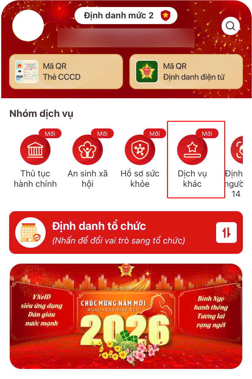 Bước 2: Tại màn hình chính chọn “Dịch vụ khác”