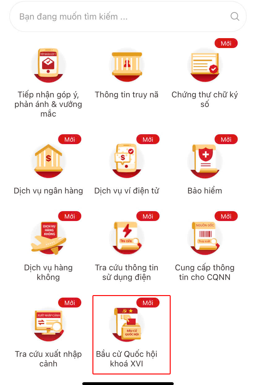 Bước 3: Trong mục “Dịch vụ khác” chọn mục “Bầu cử quốc hội khóa XVI”