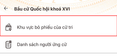 Bước 5: Tại màn hình chọn mục “Khu vực bỏ phiếu của cử tri”