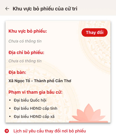 Bước 6: Kiểm tra thông tin khu vực bỏ phiếu của mình, nếu muốn thay đổi khu vực bỏ phiếu chọn “Thay đổi”.