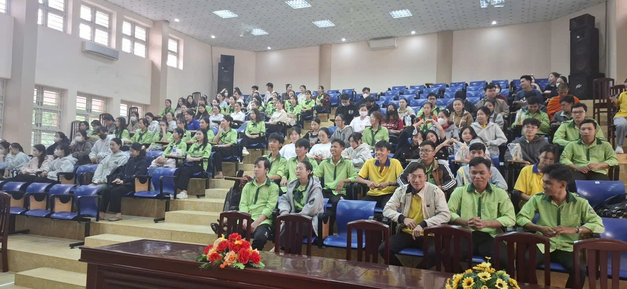Cán bộ, chiến sĩ Công an phường Vị Tân tuyên truyền pháp luật cho sinh viên tại Trường Cao đẳng cộng đồng Hậu Giang