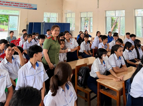 Đặc biệt, chuyên đề “Kỹ năng sử dụng mạng xã hội an toàn, phòng chống tội phạm trên không gian mạng” đã tạo được sự quan tâm, tương tác tích cực từ học sinh. Thông qua những tình huống thực tế, các em được nhận diện rõ các phương thức, thủ đoạn tinh vi của các loại tội phạm như lừa đảo, chiếm đoạt tài sản, dụ dỗ, mua bán người trên không gian mạng; đồng thời được trang bị kỹ năng sử dụng internet một cách an toàn, có trách nhiệm, biết chọn lọc thông tin và tự bảo vệ mình trước những cám dỗ, nguy cơ tiềm ẩn.