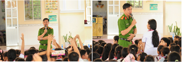 Buổi tuyên truyền có sự tham dự của 410 cán bộ, giáo viên và học sinh nhà trường. Tại đây, các cán bộ Công an xã đã truyền tải những kiến thức cơ bản, dễ hiểu và thiết thực nhất để các em học sinh tiểu học có thể nhận biết các nguy cơ mất an toàn. Nội dung tập trung vào việc hướng dẫn các em kỹ năng tự bảo vệ bản thân trước nguy cơ bị xâm hại, các biện pháp phòng tránh tai nạn thương tích trong sinh hoạt hàng ngày và đặc biệt là kỹ năng phòng chống đuối nước - một vấn đề luôn cần được cảnh báo thường xuyên tại địa phương.