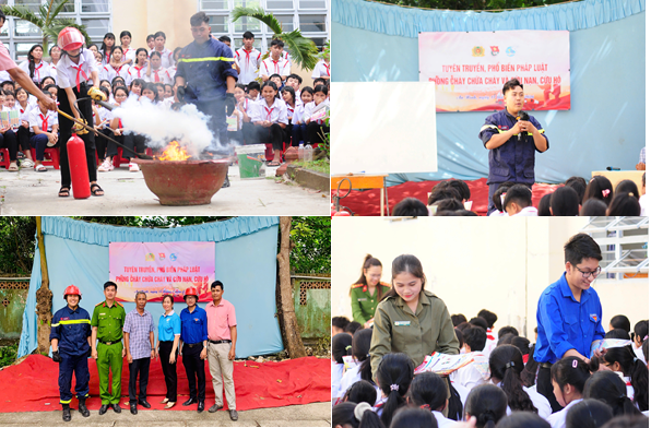 Điểm nhấn của buổi tuyên truyền là phần thực hành trực quan, sinh động. Các em học sinh không chỉ được nghe lý thuyết mà còn được trực tiếp tham gia giả định tình huống cháy, đưa ra phương án xử lý và thực hành thao tác sử dụng bình chữa cháy để dập tắt đám cháy giả định. Hoạt động này đã tạo không khí sôi nổi, giúp các em nắm vững thao tác và tự tin hơn trong việc ứng phó với các sự cố thực tế.