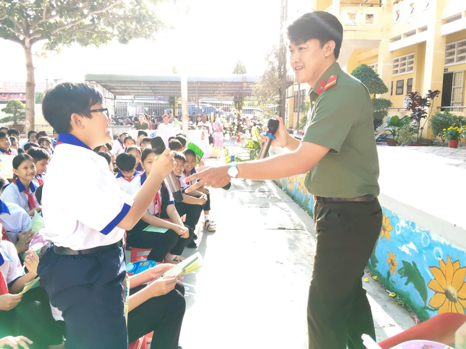 Các em học sinh tích cực tham gia phát biểu ý kiến trong buổi tuyên truyền