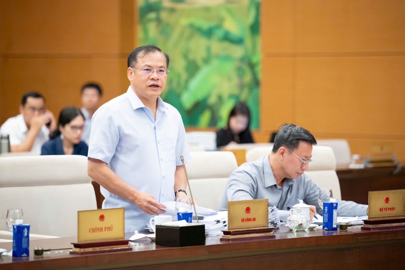 Ảnh: Thứ trưởng Bộ Công an, Thượng tướng Nguyễn Văn Long trình bày Tờ trình dự án Luật sửa đổi, bổ sung 10 luật liên quan đến an ninh, trật tự tại Phiên họp thứ 49, Ủy ban Thường vụ Quốc hội ngày 23/9/2025.