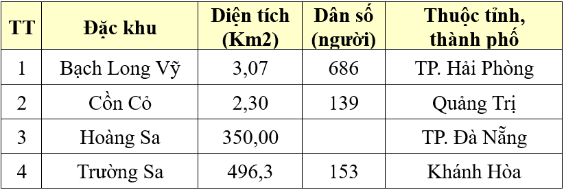 Bảng: Theo Luật Tổ chức chính quyền địa phương năm 2025, có 04 đặc khu có dân số thường trú dưới 1.000 người không tổ chức chính quyền địa phương.
