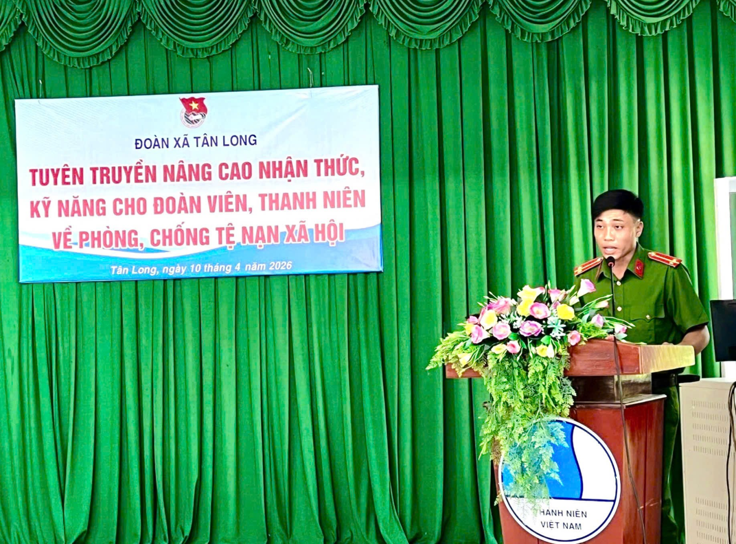 Ngày 10/4/2026, Đoàn xã Tân Long phối hợp với Công an xã Tân Long tổ chức buổi tuyên truyền nhằm nâng cao nhận thức, kỹ năng phòng, chống tệ nạn xã hội cho đoàn viên, thanh niên trên địa bàn.