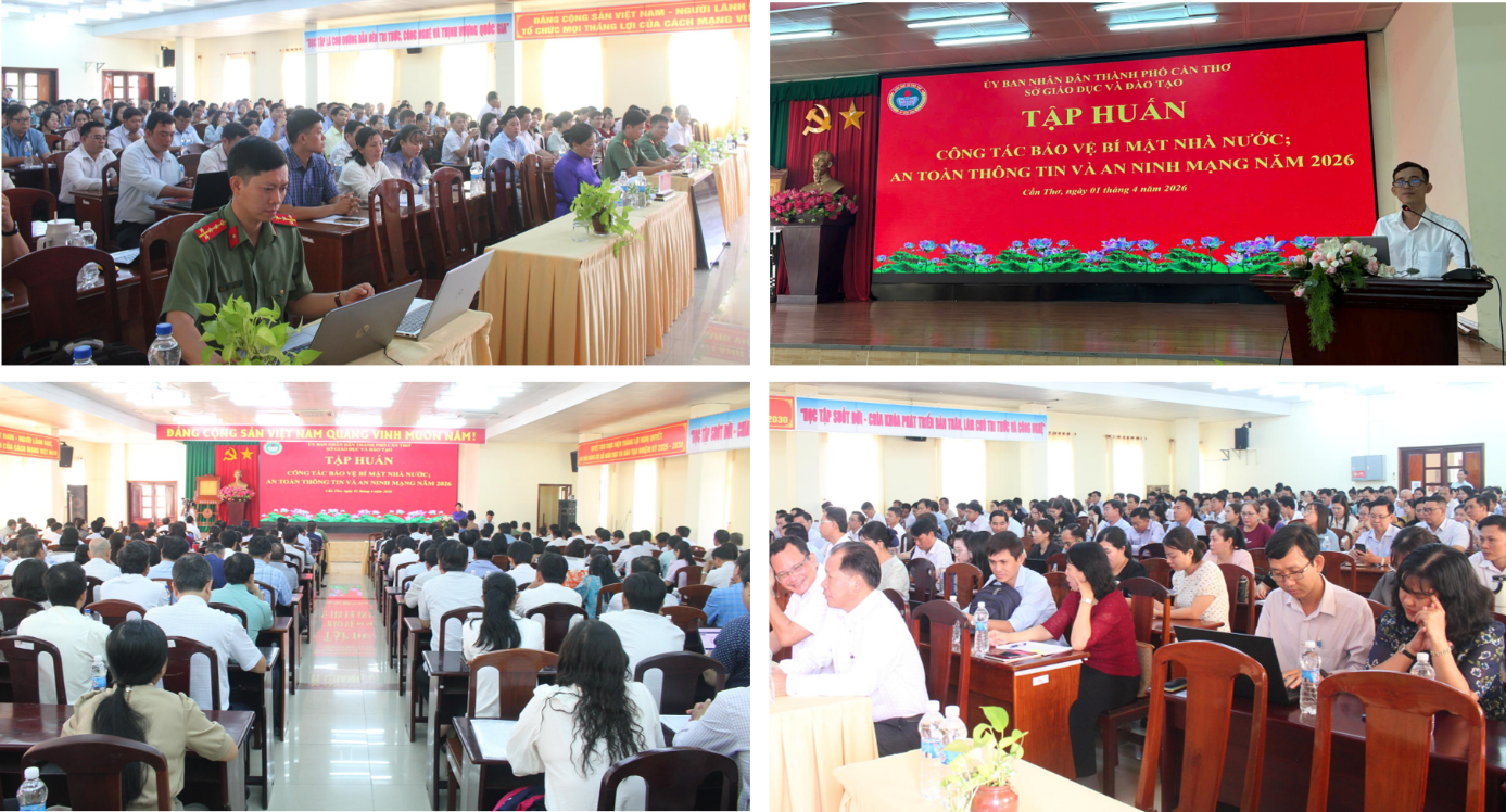 Ngày 01/4/2026, Phòng An ninh chính trị nội bộ phối hợp Phòng An ninh mạng và phòng, chống tội phạm sử dụng công nghệ cao, Công an thành phố và Văn phòng Sở Giáo dục và Đào tạo thành phố Cần Thơ tổ chức Hội nghị tập huấn công tác bảo vệ bí mật nhà nước, an toàn thông tin và an ninh mạng cho lãnh đạo, công chức, viên chức ngành Giáo dục và Đào tạo thành phố.