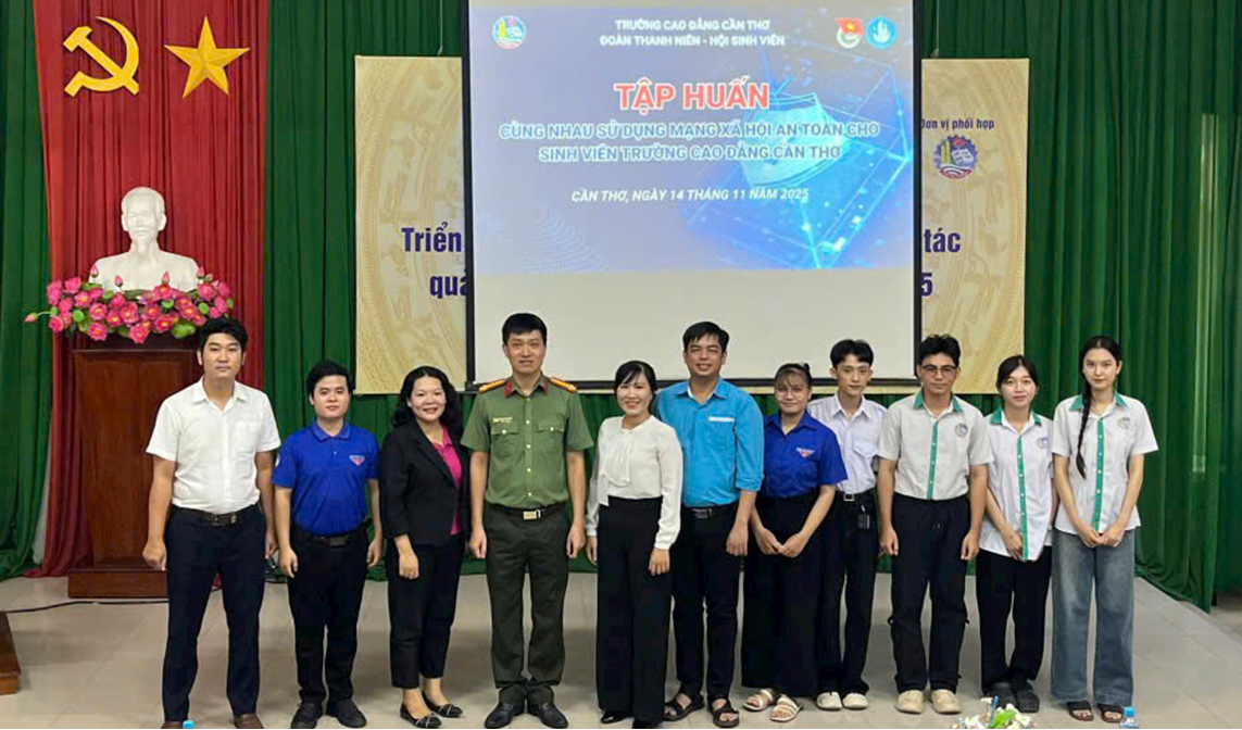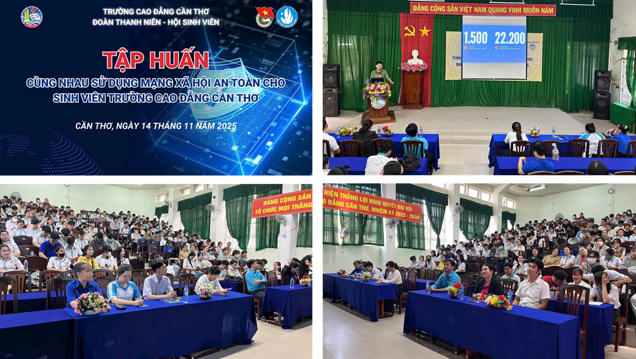 Trong bối cảnh công nghệ số phát triển mạnh mẽ, mạng xã hội đã trở thành một phần không thể thiếu trong đời sống của sinh viên. Tuy nhiên, đi kèm với những lợi ích là các nguy cơ tiềm ẩn như lừa đảo trực tuyến, lộ lọt thông tin cá nhân và nguy cơ bị lôi kéo vào các hoạt động vi phạm pháp luật. Nhằm trang bị những kiến thức về sử dụng mạng xã hội an toàn, ngày 14 tháng 11 năm 2025, tại Trường Cao đẳng Cần Thơ, Phòng An ninh chính trị nội bộ, Công an thành phố Cần Thơ phối hợp với Đoàn Thanh niên và Hội Sinh viên Trường Cao đẳng Cần Thơ tổ chức buổi Tập huấn cùng nhau sử dụng mạng xã hội an toàn cho 200 sinh viên Trường Cao đẳng Cần Thơ. Tại buổi tập huấn, các em sinh viên đã được tiếp cận với các nội dung như: nhận diện và phòng tránh các hình thức lừa đảo phổ biến trên không gian mạng hiện nay (đặc biệt là thủ đoạn “bắt cóc online”, lừa đảo qua mạng xã hội, mạo danh người quen, cơ quan chức năng để chiếm đoạt tài sản); các nguyên tắc bảo mật thông tin cá nhân; kỹ năng phòng vệ khi bị đe dọa hoặc lừa đảo qua mạng; văn hóa ứng xử trên không gian mạng và việc sử dụng mạng xã hội để phục vụ việc học tập và phát triển bản thân một cách hiệu quả.