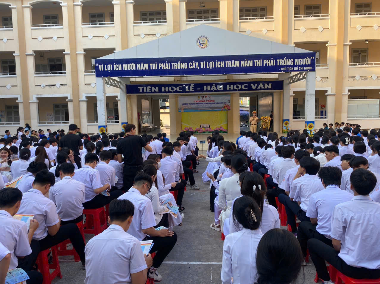 Ngày 23/03/2026, Phòng Cảnh sát giao thông TP. Cần Thơ phối hợp với Công an phường Tân An tổ chức tuyên truyền, phổ biến pháp luật về an toàn giao thông tại trường trung học phổ thông An Khánh, phường Tân An, phát tờ rơi tuyên truyền cho 500 lượt giáo viên, học sinh của nhà trường và trao tặng 15 mũ bảo hiểm đạt chuẩn cho các em học sinh tham gia; nhằm nâng ý thức pháp luật về bảo đảm trật tự, an toàn giao thông, kỹ năng tham gia giao thông an toàn, cách xử lý tình huống khi gặp va chạm, tai nạn giao thông, nội dung về học kỹ năng lái xe gắn máy an toàn trong lứa tuổi học sinh năm 2026.